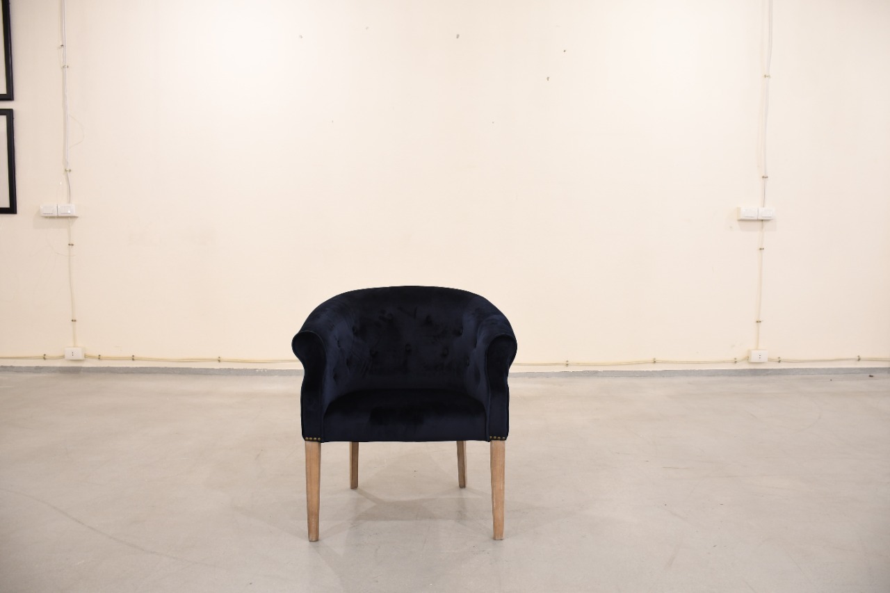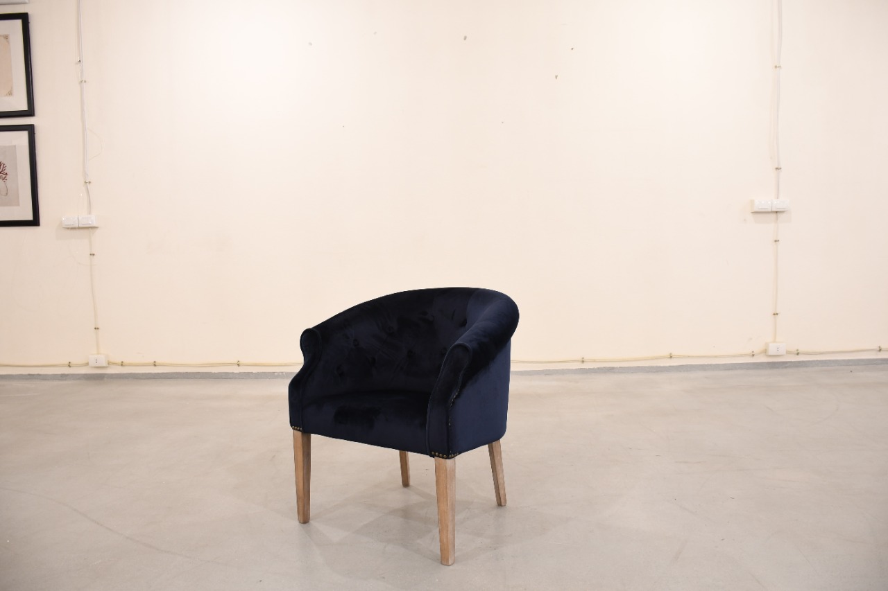 ARM CHAIR WITH FABRIC BODY AND REAL OAK WOOD LEGS
