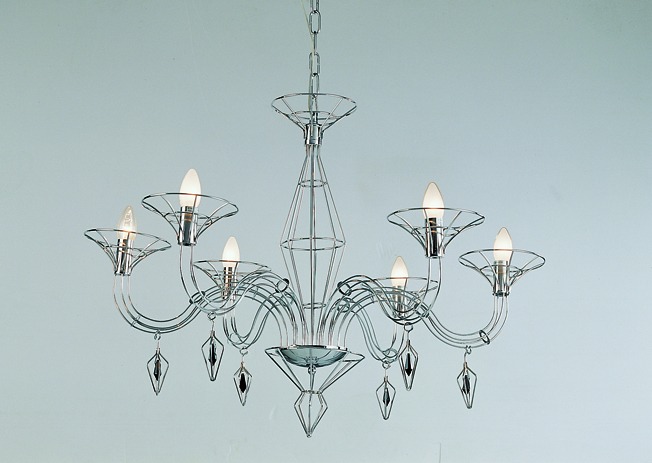 STEEL PENDANT LAMP IN SILVER COLOR WITH SIX ARMS